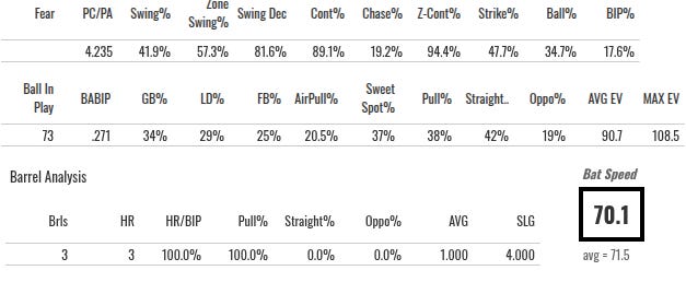 This isn’t about projecting a power breakout — it’s about confirming that when Kim lifts the ball, he’s capable of doing damage. That’s enough to support double-digit home runs in a strong lineup context.