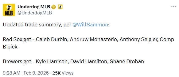 As I was writing about Ozuna, the Boston Red Sox and Milwaukee Brewers made a rather shocking trade.