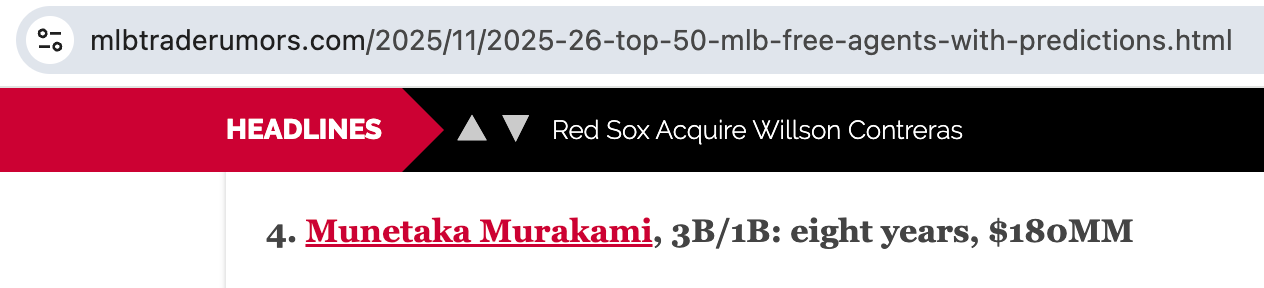 Personally, I nailed this contract. In my head, back in October, I said, “I bet Murakami gets like two years and $20 million to go to the White Sox. I even tried to write that prediction down on Twitter and on these pages, but I guess it just didn’t send. Damned wireless internet, amirite?