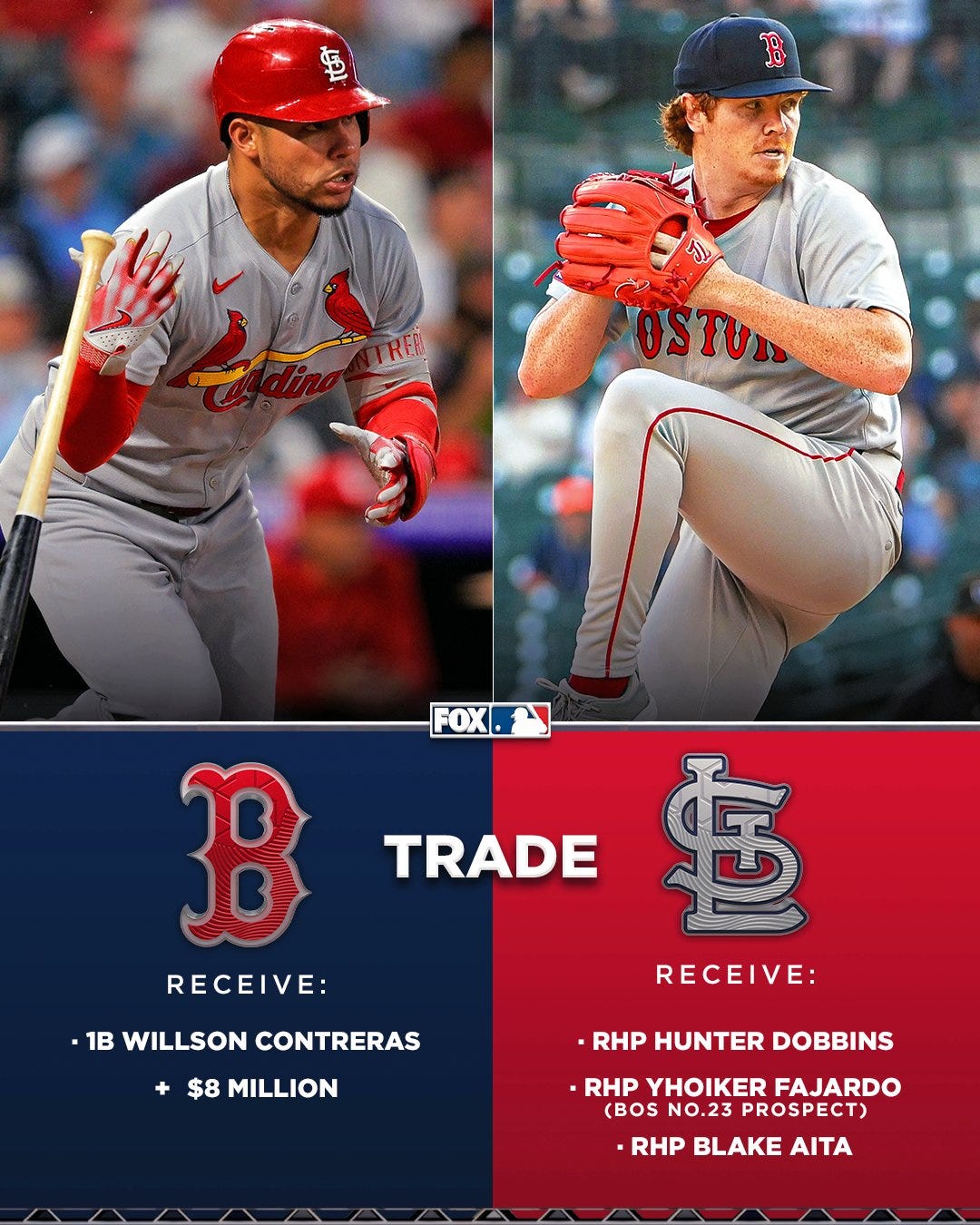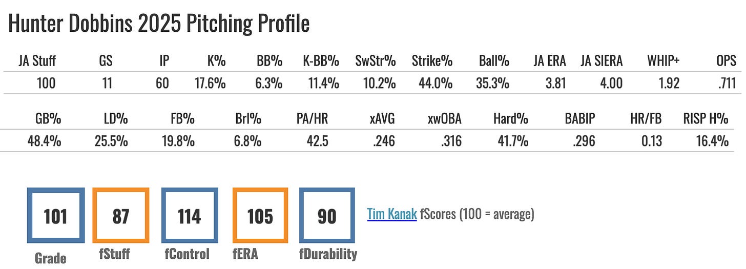 The return for St. Louis was pitcher-heavy. Hunter Dobbins probably joins the Cardinals’ rotation right away. His 2025 in Boston: