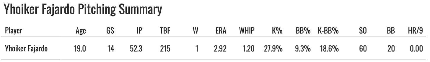 The biggest get for the Cardinals with Yhoiker Fajardo, a 19-year-old pitching prospect who had an awesome season in 2025: