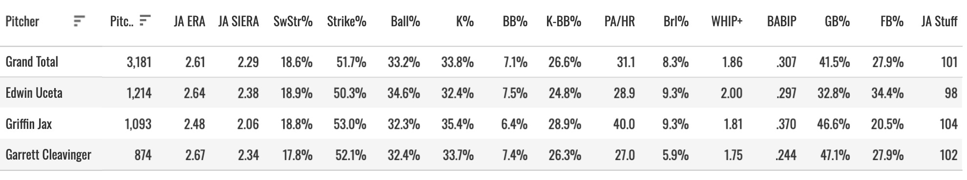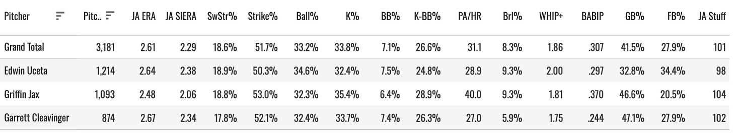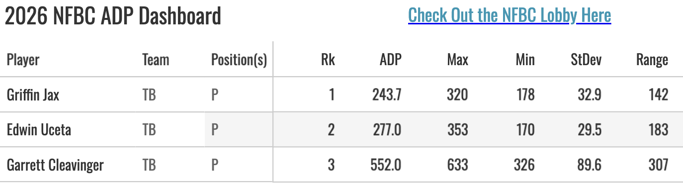 There are a couple of actionable items to unpack here. Griffin Jax is the headliner, as he was one of the most dominant relievers in baseball last year, ranking 8th in K-BB at 28.1%. He was also rumored to be an option in the starting rotation, which would have elevated his draft value. Jax currently has an ADP at NFBC of 244, and likely would have moved into the top 200 if he were being stretched out. He may still move into the top 200 with the confirmation that he will be getting saves in 2026.