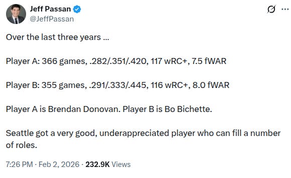 In terms of third basemen rankings, Donovan's ADP should rise slightly. He is joining a much better lineup that should boost his counting stats. In fact, check out this tweet (X post?) by Jeff Passan.