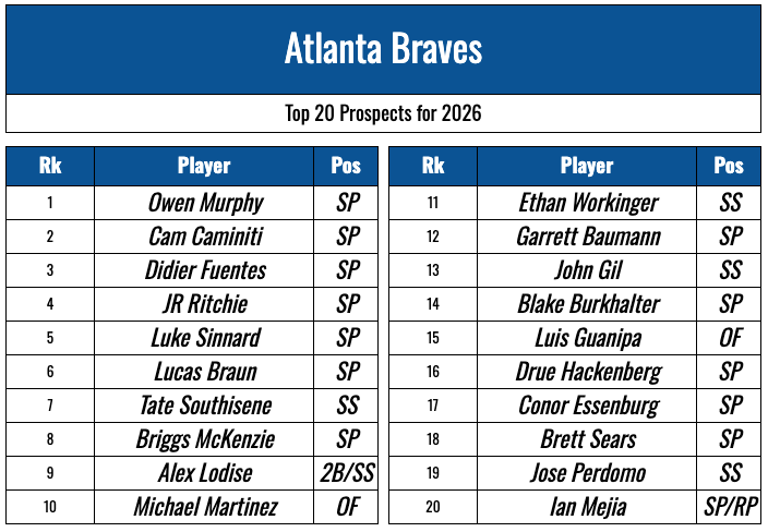 I was surprised at how crappy this Braves farm system looks. Not much to like outside of a couple of high-upside arms at the top of the list who we’re unlikely to see until 2027.