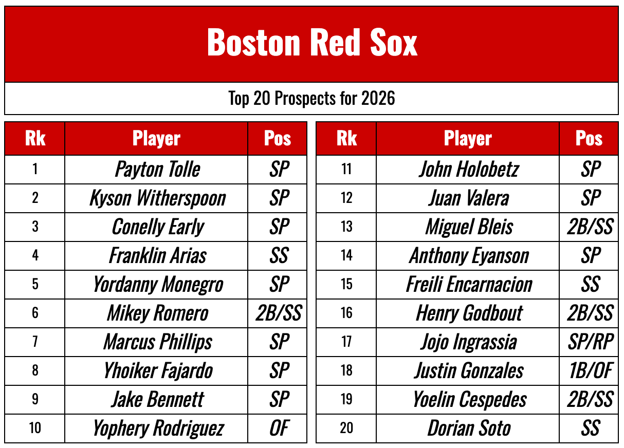 The Prospect Warehouse: 2026 Boston Red Sox