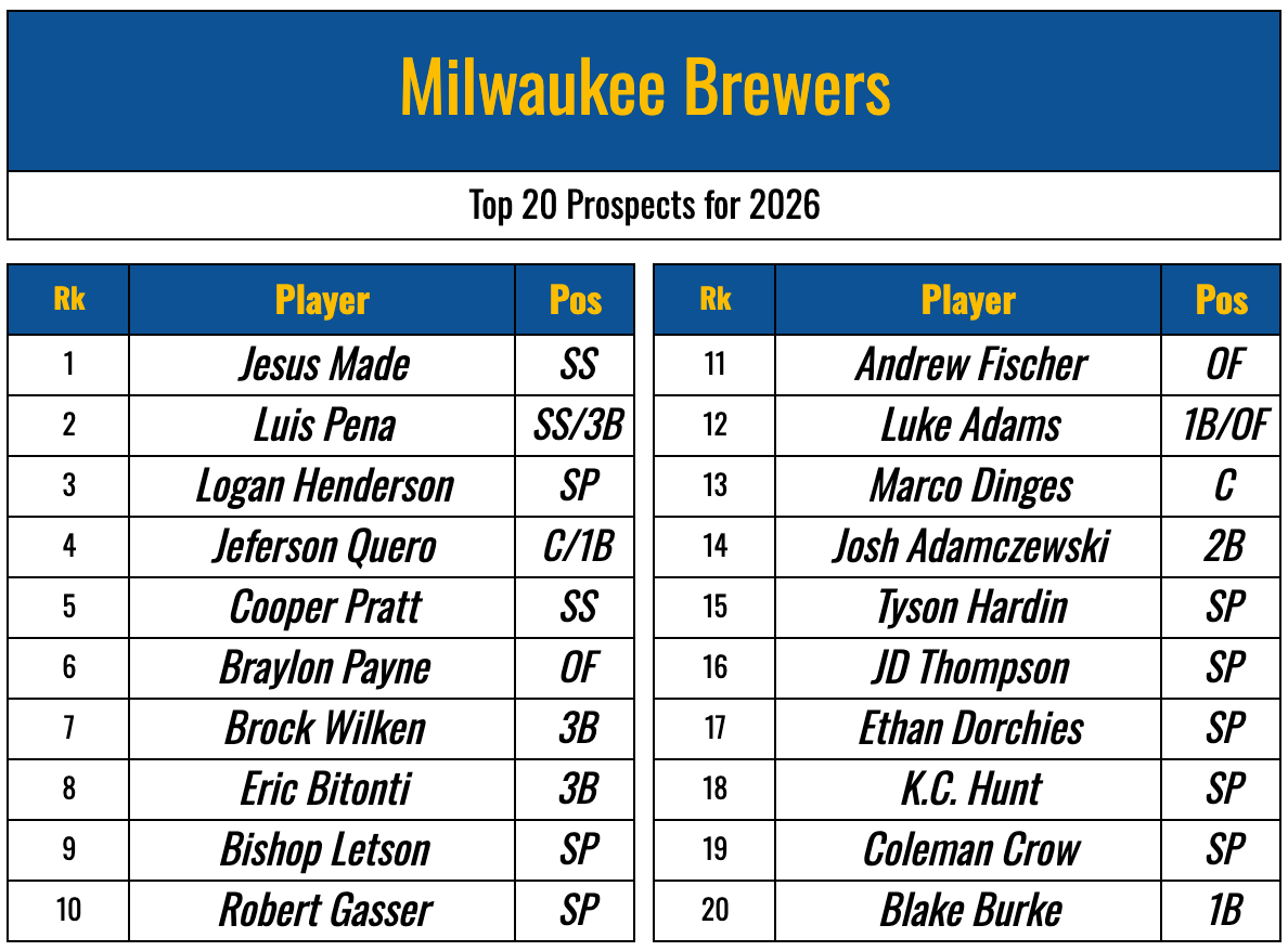 The Prospect Warehouse: 2026 Milwaukee Brewers