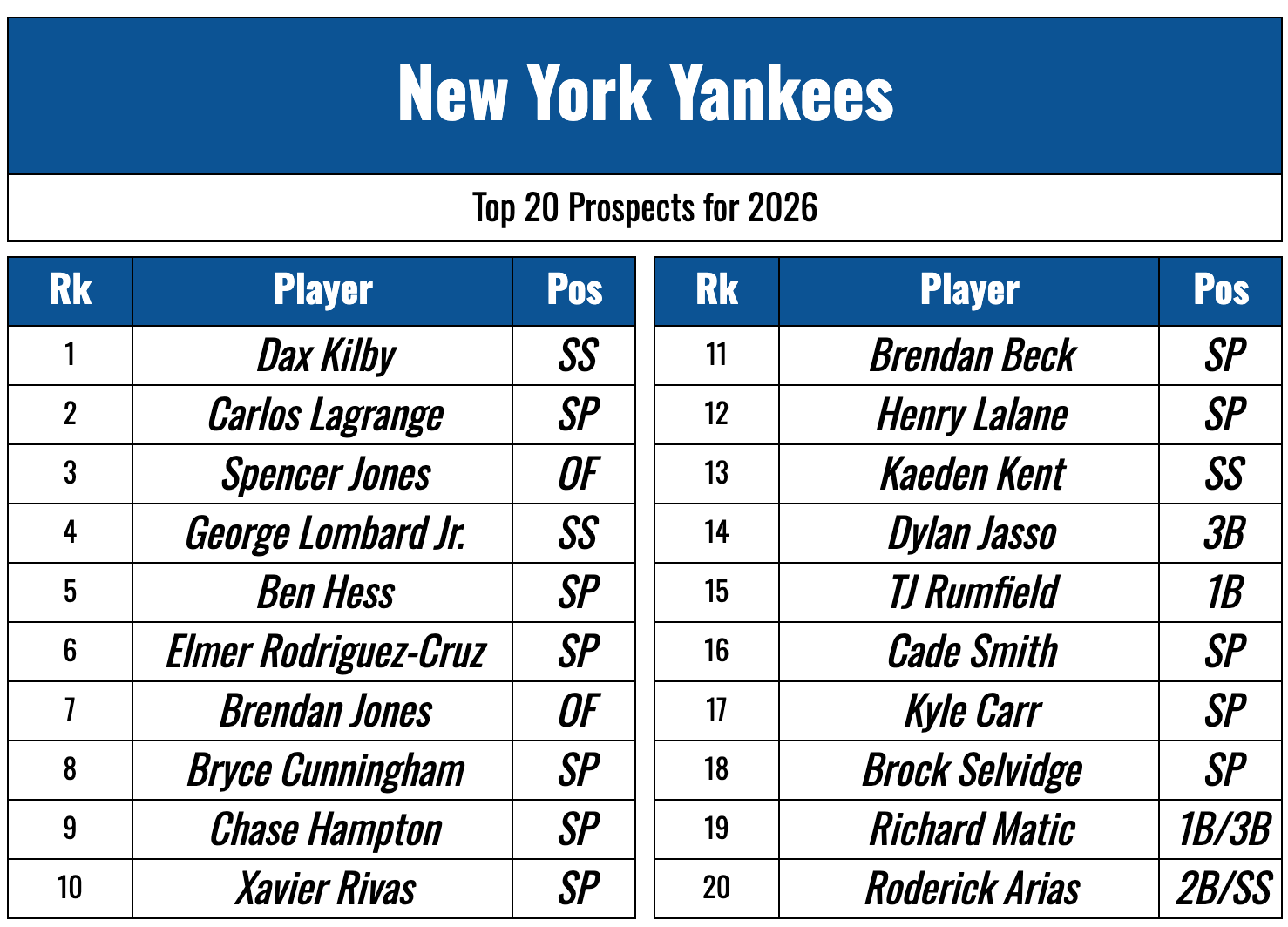 Jon and Tim talk through the top 20 Yankees prospects for 2026