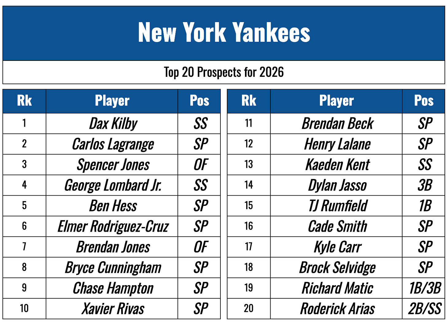 The Prospect Warehouse: 2026 New York Yankees