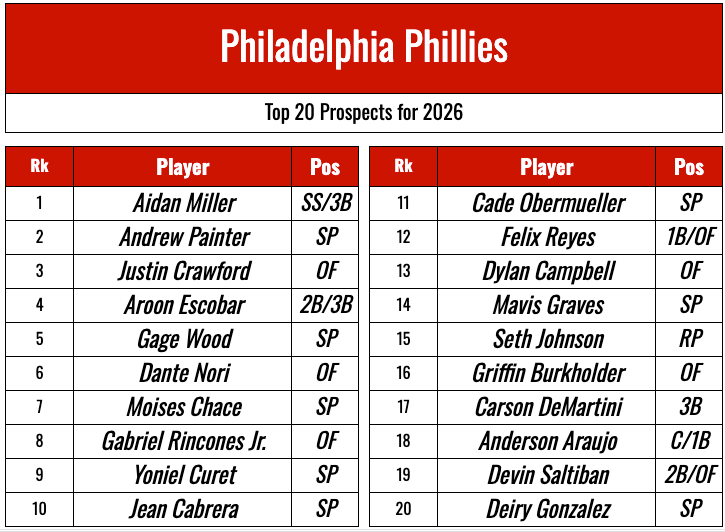 The Prospect Warehouse: 2026 Philadelphia Phillies