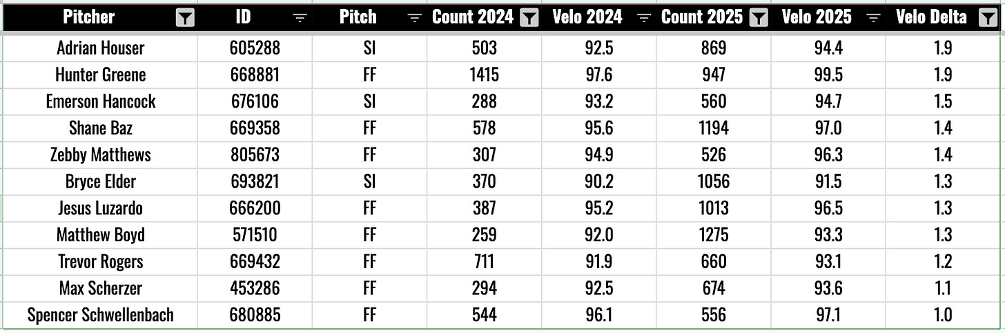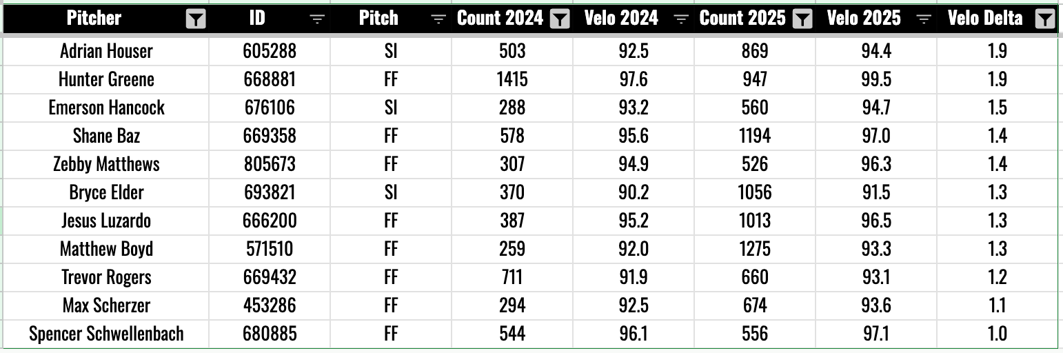 Here’s every other starter who added at least one mile per hour to a fastball last year: