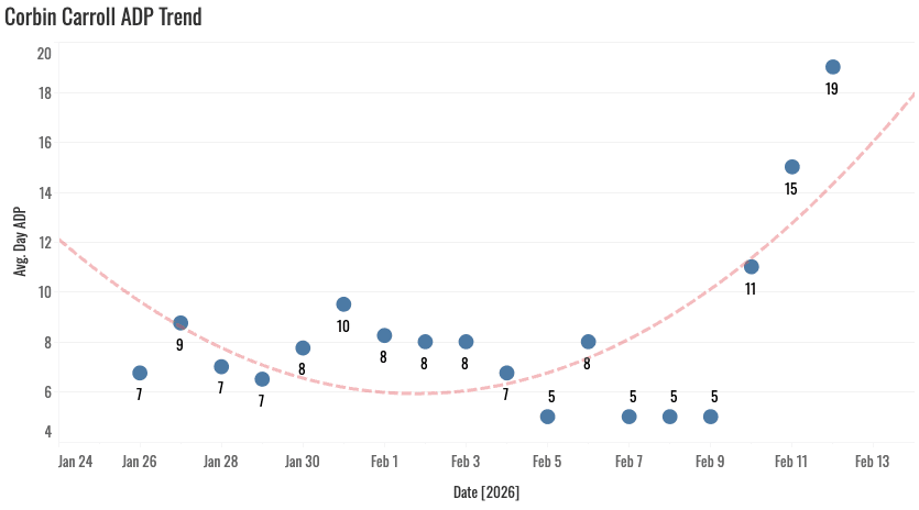 You can get Carroll in the second round now. The max pick so far is #19. I’m not sure he’ll continue to fall past that. Carroll can be a fantasy stud without hitting a ton of homers, he’s done that before. Even if he does lose some of that power for a few months, that could mean more singles, which means more steals. So he doesn’t need the homers as much as other first-rounders. I’d be pretty happy to get him in the middle of the second round.
