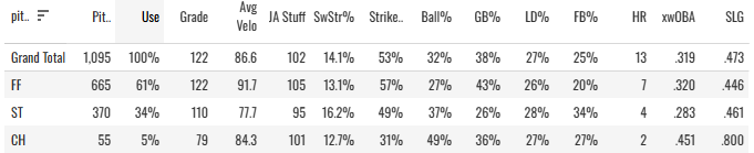 Last season, Taj relied much too heavily on his fastball. It was getting hammered, sporting a .519 SLG% and .388 xwOBA. He seemed to keep this same game plan going so far this season for some reason.