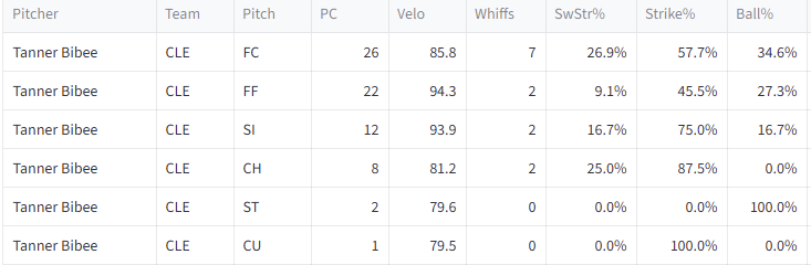 The Cleveland Guardians’ starting pitcher tossed 3.2 innings Tuesday, allowing 4 hits but striking out 6 and walking none. Bibee has fallen into the realm of a non-sexy pitcher the last couple of seasons. A fall from grace, once pitching at a 25.5% K-BB%, to now living at or below league averages. But all that can change this season if he can rekindle his 2021-2022 self. At least on Tuesday, it looked like he could.