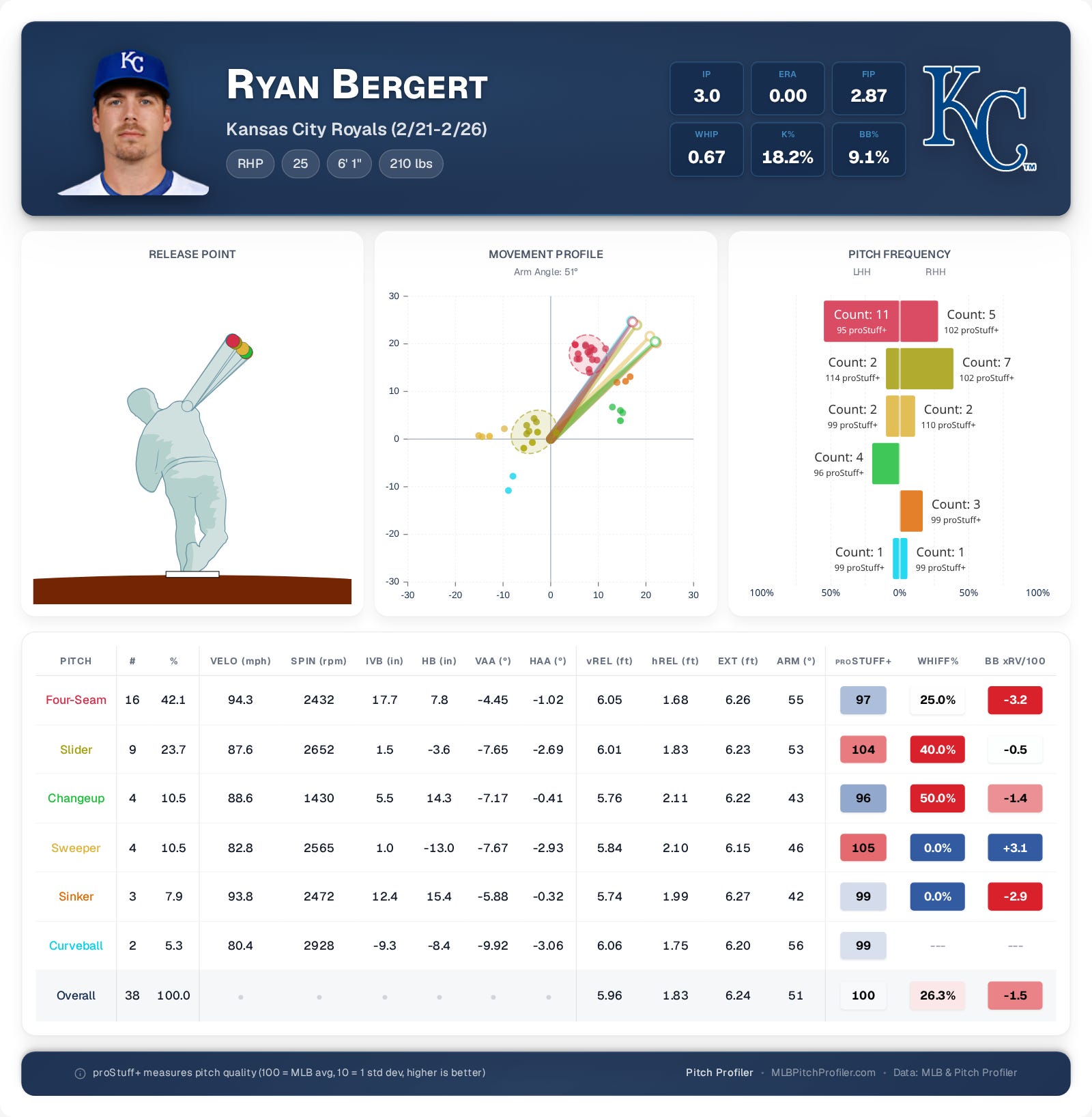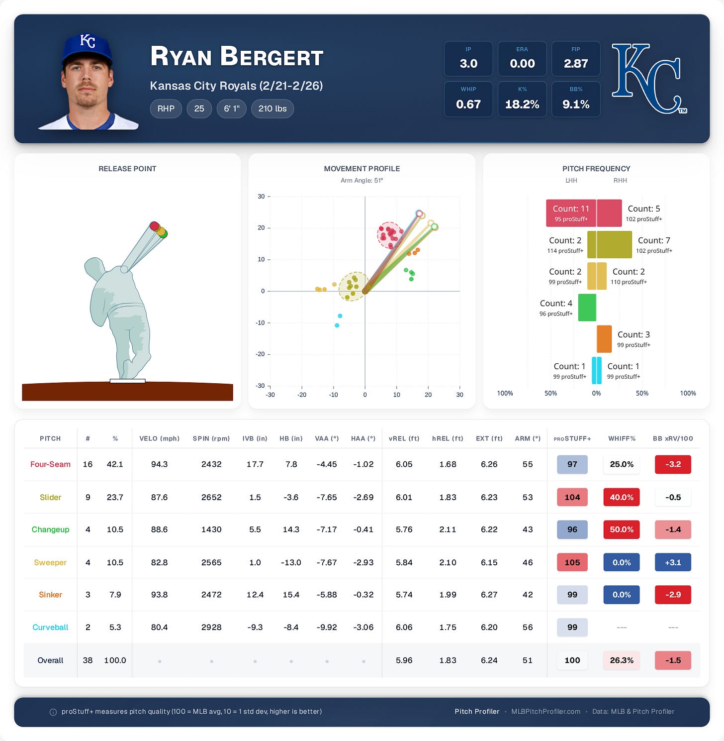 Coming over to Kansas City from San Diego last trade deadline, Bergert was a streamer starting pitcher in my fantasy leagues in 2025. On Tuesday, Ryan went three innings, striking out four, giving up no hits but walking one. He started the game against Cuba.
