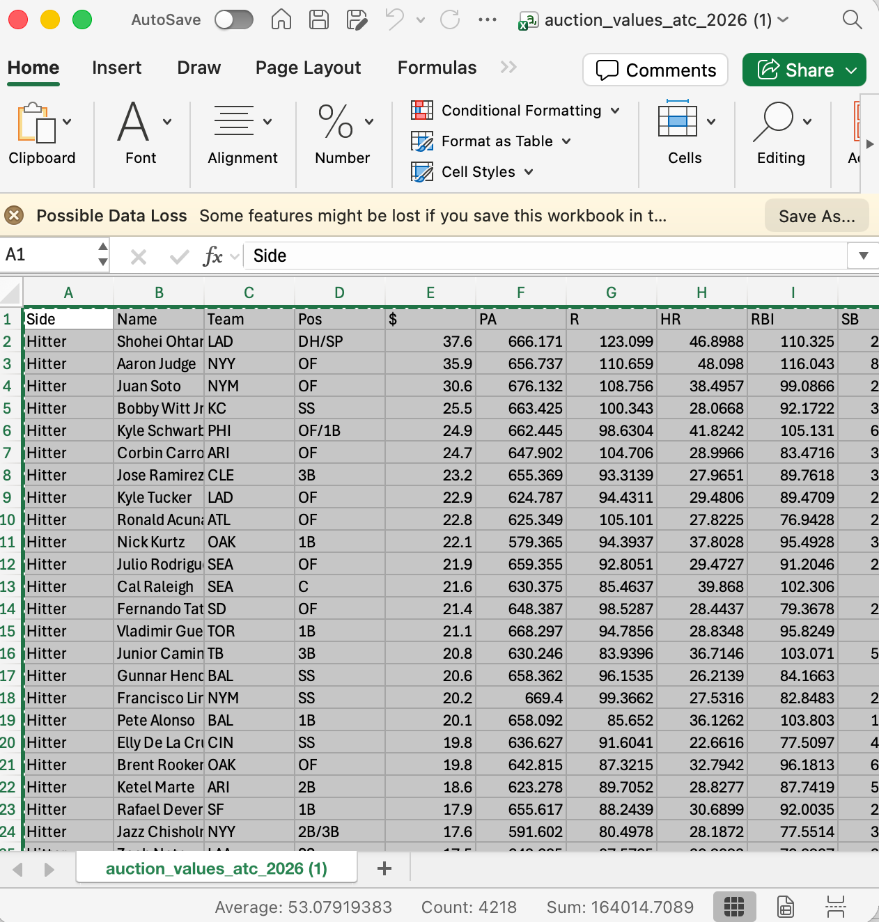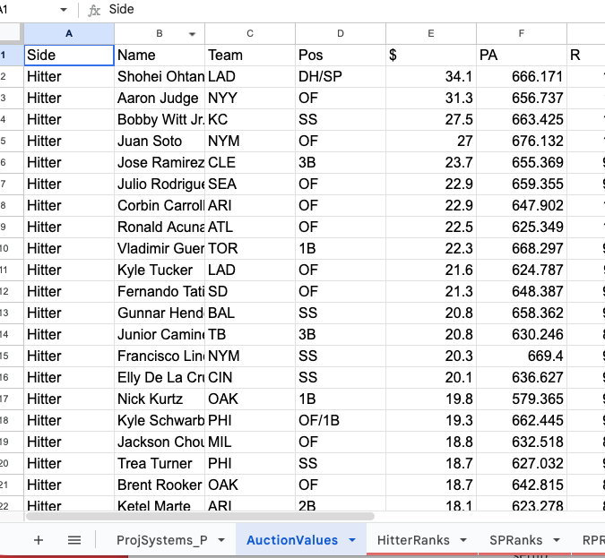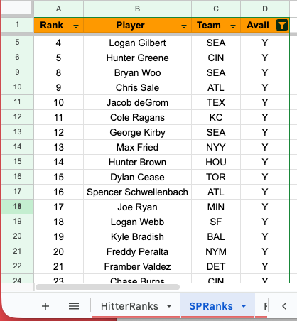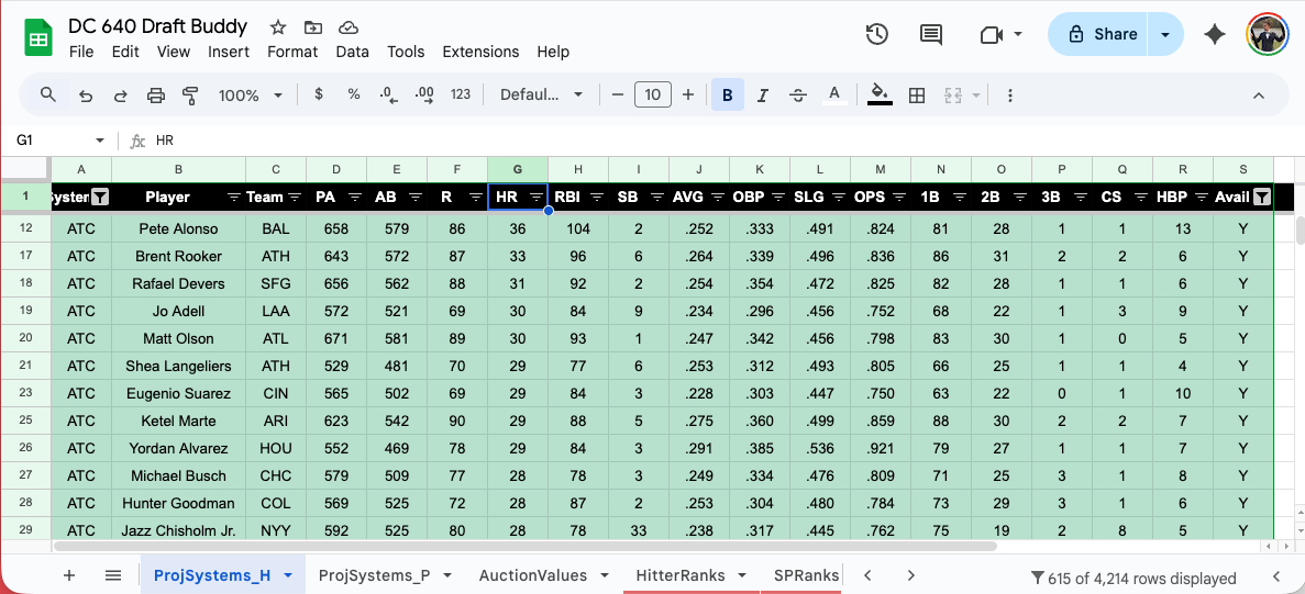 You filter that to “Avail = Y” and then you can sort by whatever. In that screenshot, I filtered to ATC projections and saw the highest remaining HR projections.
