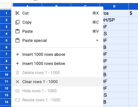 Helpful keyboard shortcut: click on cell A1, hold down CTRL and SHIFT, and then hit the down arrow and the right arrow. That will select all data. (CMD + SHIFT for mac)