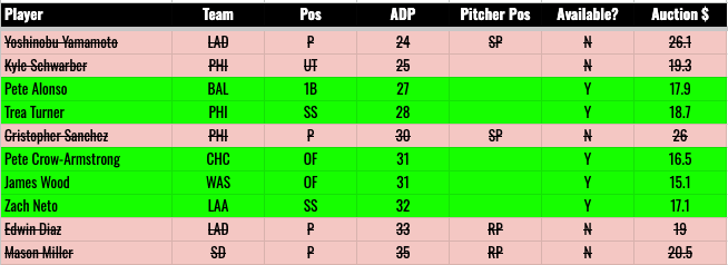 So you can then see the “best available” in terms of NFBC ADP and auction values. The auction values are new as well, and we’ll get to that.