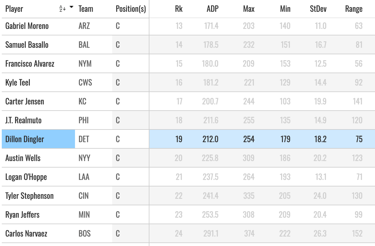 Catchers are finicky. They’re the least reliable position by far as far as year-to-year hitting consistency goes, but I’d be more than fine having Dingler on a fantasy roster this year. I’d still rather have one of the guys who plays first or DHs a lot, because the extra playing time is huge. But if I’m down below the top couple of tiers in catchers, I’m looking for Dingler every time.
