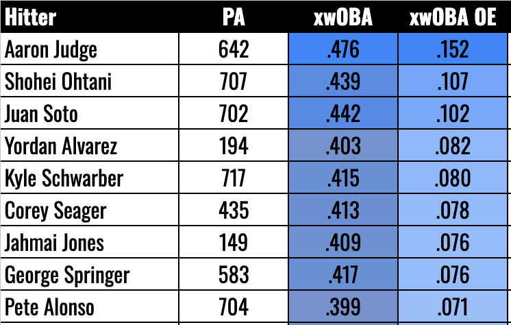I’ve made some stats up over the years here, and one of the better ones, I think, is this xwOBA OE metric. You can, and should, read it about it here: