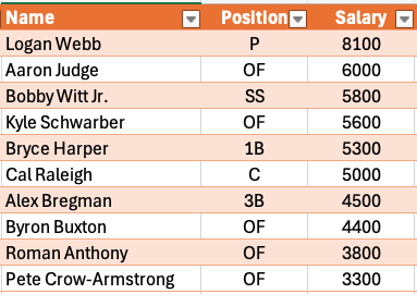 I’ll probably use CHATGPT to optimize ten lineups. But I need to go get some lunch right now and I’ll do the lineups later. Here’s the pool I’ve narrowed down through this:
