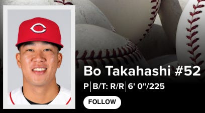 Takahashi was in the minors with the Reds back in 2021. Last year, he played in Japan with pretty poor numbers (38 strikeouts in 64 innings for a 1.44 WHIP and a 4.92 ERA).