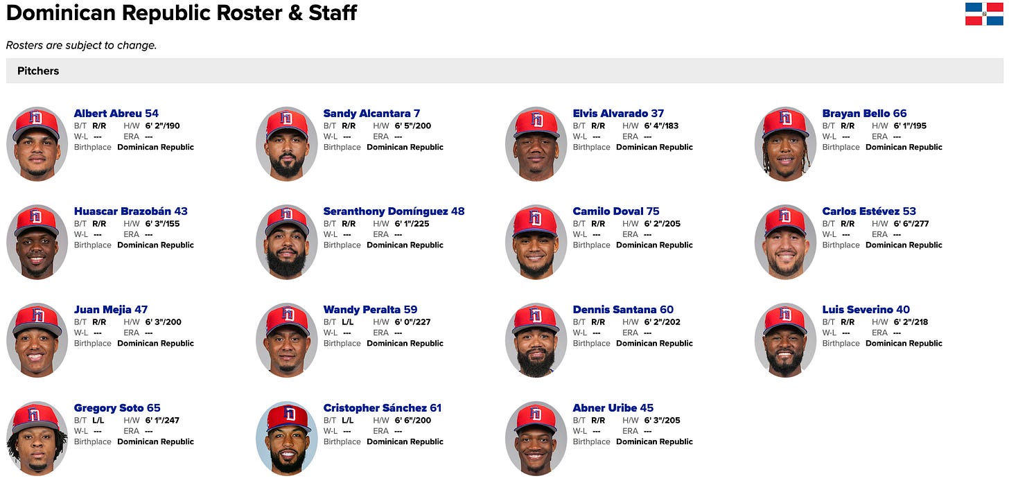 We have Mark Vientos on this Nicaragua team. Our old buddy Jeter Downs is also on th team. But Vietnos is the only one with recent MLB action. The DR bullpen is stacked up behind Sanchez: