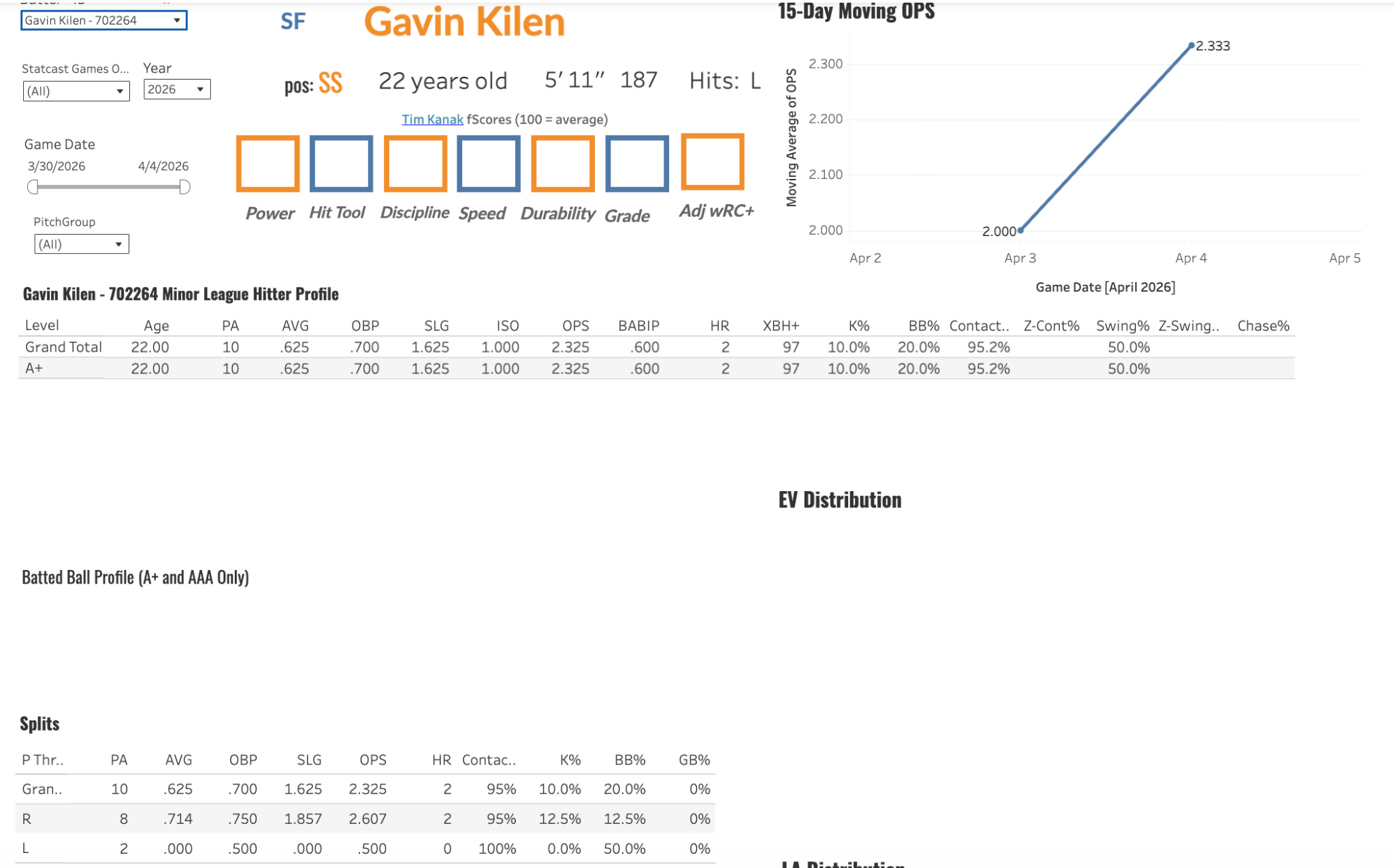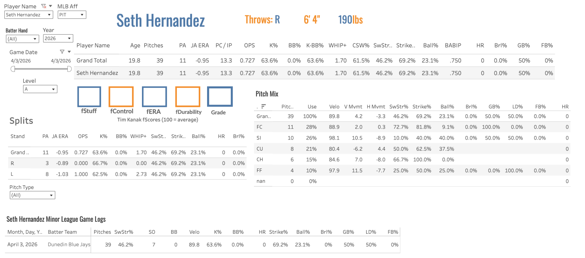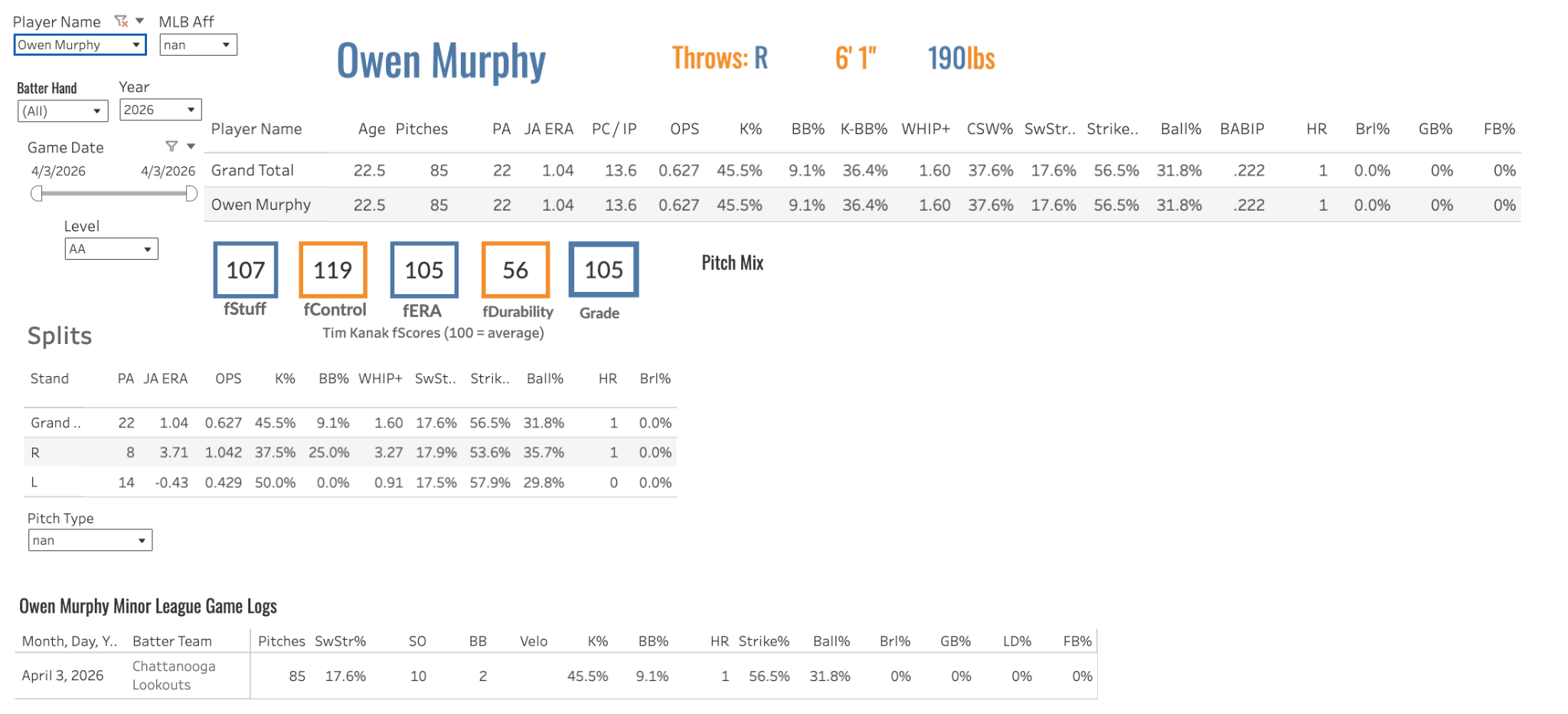 We have put together 2025 and 2026 minor league data (including Statcast stuff in some cases) into one dashboard for quick prospect comparison. The link has been added to the Resource Glossary, and you’ll find it in this post after the paywall.
