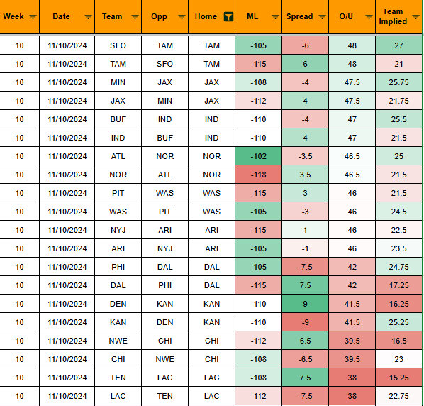 Spread: Bears -6.5We start with a poor game environment. We have two capable defenses and two poor offenses. To add to that, we don’t have any injury situations to take advantage of, so I doubt we will end up on any plays, but let’s take a quick look.