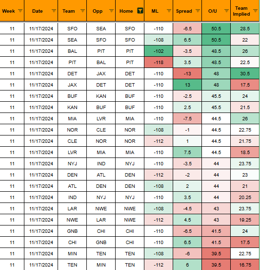 Week 11 NFL DFS Slate Breakdown