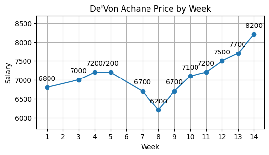 De’Von Achane ($8,200) is finally priced where he should be. Since week eight, when Tua returned, he has 68 rushes and 38 targets, and he’s scored 20+ points in each game but one. He saw nine targets last week and has averaged 6.3 with Tua back. Given the matchup and the price, I can’t call him a lock, but he’ll be once again in the player pool.
