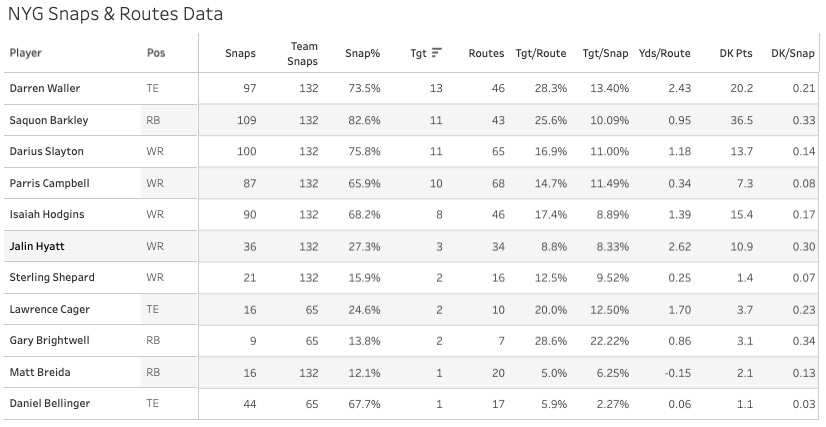 Much more clarity here with no big injury situations, although Giants pass catchers haven’t been a great place for fantasy points for several years now if I remember correctly.