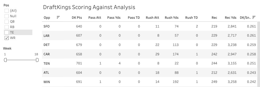 They were in the middle of the pack against tight ends. But that stuff is subject to a bunch of noise, I’m sure, and the defensive units are never the same year-over-year, so it’s not something to really lean into.