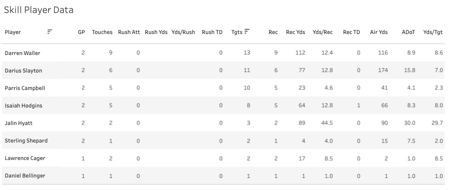 Waller is the best play of the bunch, but Slayton seems like a pretty good upside play as well with the downfield looks he gets and with the Giants very likely playing catchup in this one.