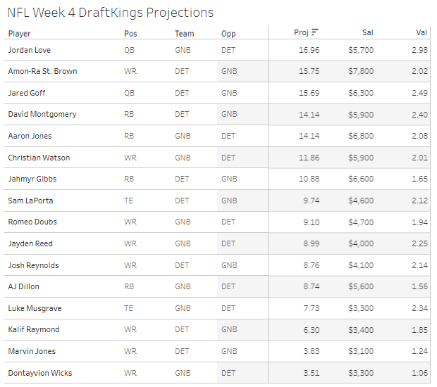 A statistics and projection-powered breakdown of the Week 4 Showdown Matchup on DraftKings - Lions vs. Packers