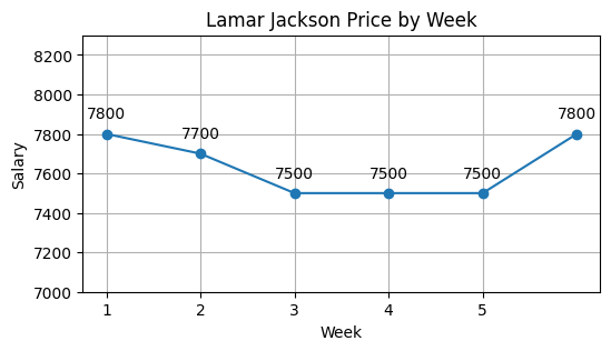 We have two very good and very expensive quarterbacks in this game. Lamar Jackson ($7,800) leads the league in DraftKings points scored at the position with 130.5. He’s scored 28, 16, 26, 24, and 36 so far. The price is up $300 from where it’s been the last three weeks.