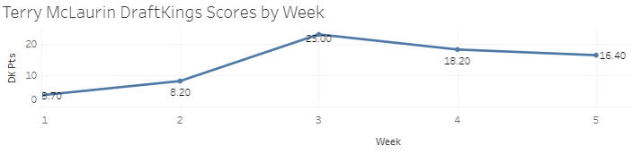 McLaurin is dependent on the long ball to get a big score. His game log shows his downside: