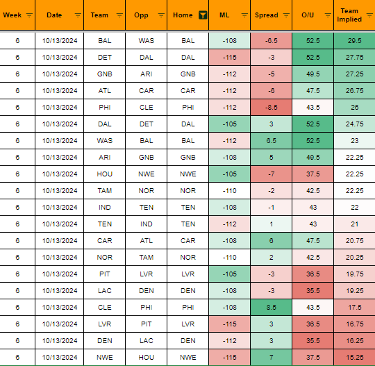 Spread: Texans -7The Patriots really drag down fantasy production. Their games have gone for 26, 33, 27, 43, and 25 points. The Patriots offense has been the second-worst in the league (to Cleveland), and that has pushed them finally to the move at quarterback as Drake Maye will make his first start. We also have a big injury on the other side with Nico Collins out for at least four weeks. There will be some value plays here.