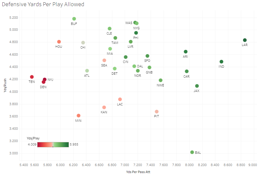 Spread: Ravens -6.5We are starting with one of the big ones. The Ravens have given up 5.4 yards per play, which is around the league average. However, they have been shredded by quarterbacks with an 8.0 YPA that ranks fourth-worst in the league. Baltimore pass yards given up: